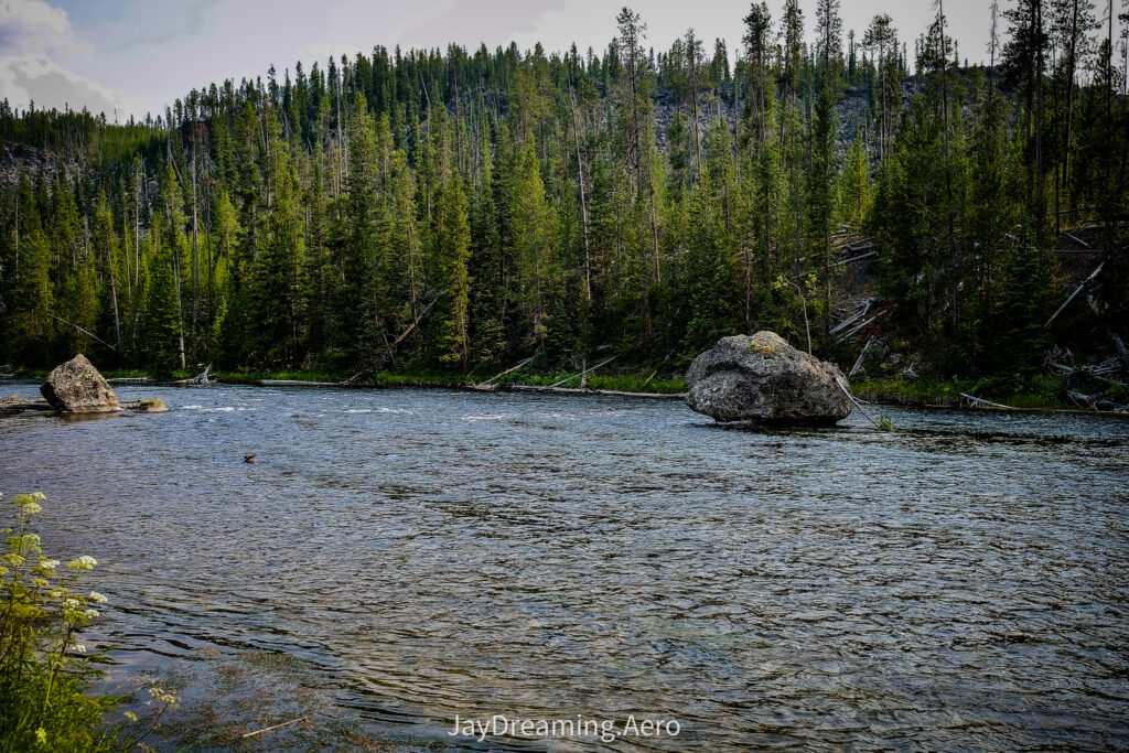 Whispers of Wilderness: Trees, Rocks, and the Flowing Yellowstone.
